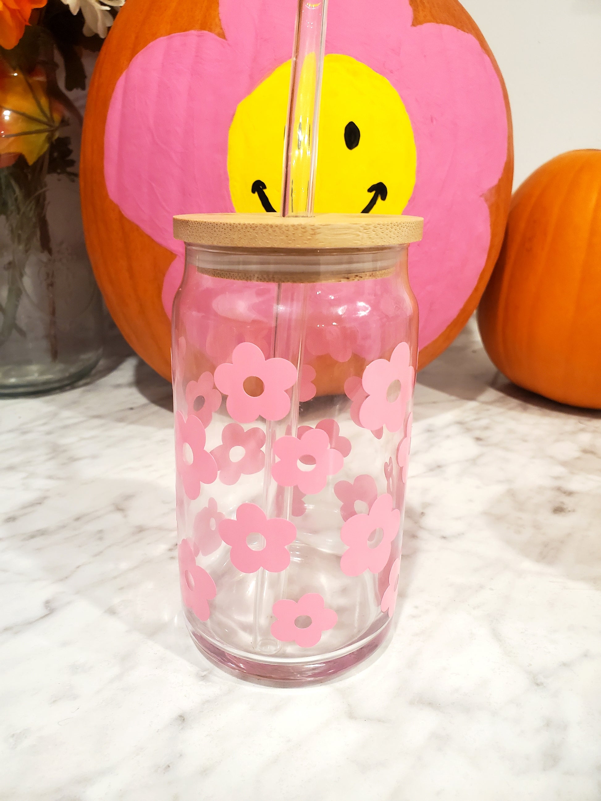 Flower Power Glass Can Cup